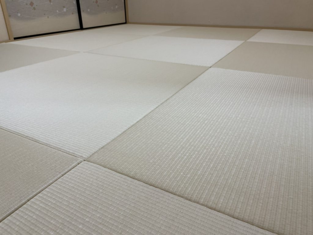 尼崎市塚口町でダイケン工業『清流No.10乳白色』を使ったフチなし畳(琉球畳)に取りかえた事例をご紹介します。