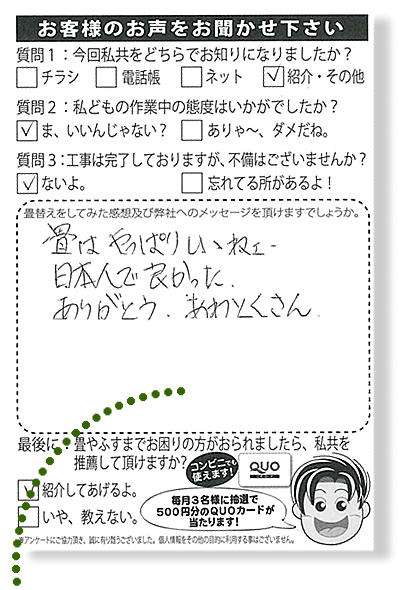 【畳の貼り替え】ダイケン工業『清流No.10乳白色』を使ったフチなし畳(琉球畳)
