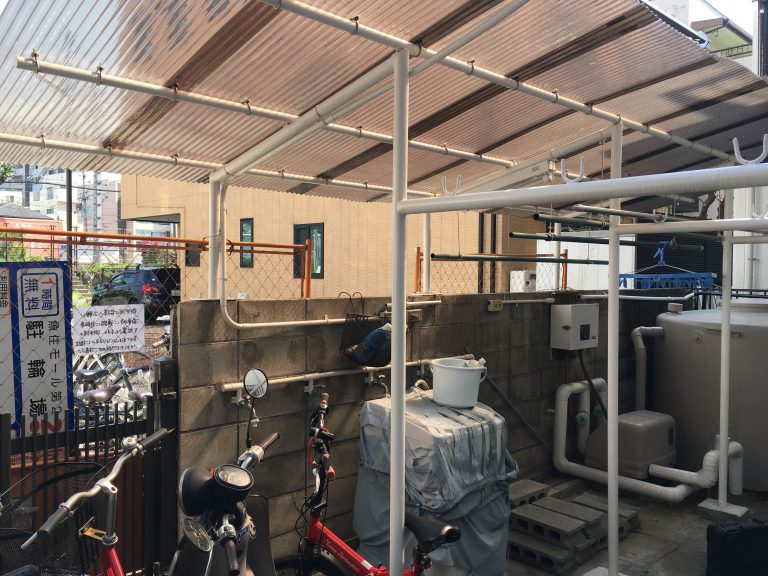 写真は、下塗りを掛けたのち、上塗りをかけるため