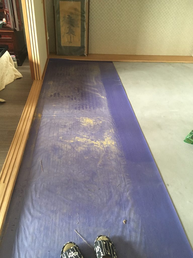 畳を搬出後、下に敷いてあったシートを撤去処分