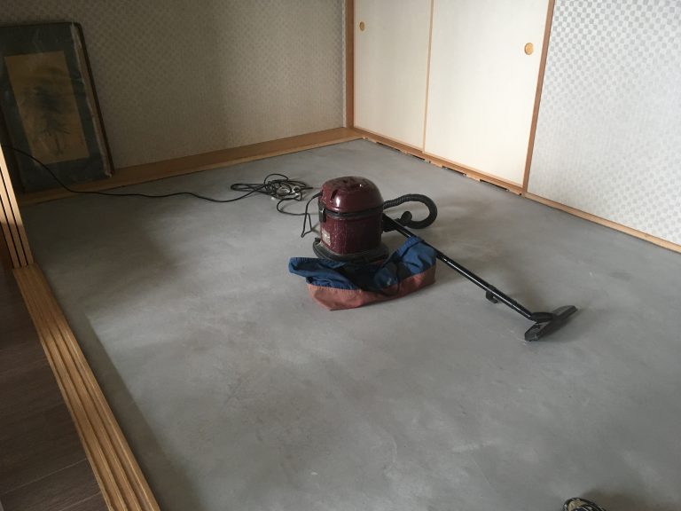 コンクリートの上を掃除機で清掃したのち