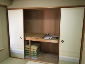 襖の張替えと押入れの改修を依頼されました。襖紙の表面にアクが出ています。押入れは、洋服がつれるように、とのご希望でした。 押入れの中の中段を撤去そして、ハンガーパイプを吊ります。 完成写真です。押入れというよりも、クロー […]