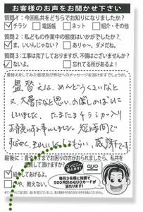 お客様の声「短時間で素早く、きれいにしてもらえた」