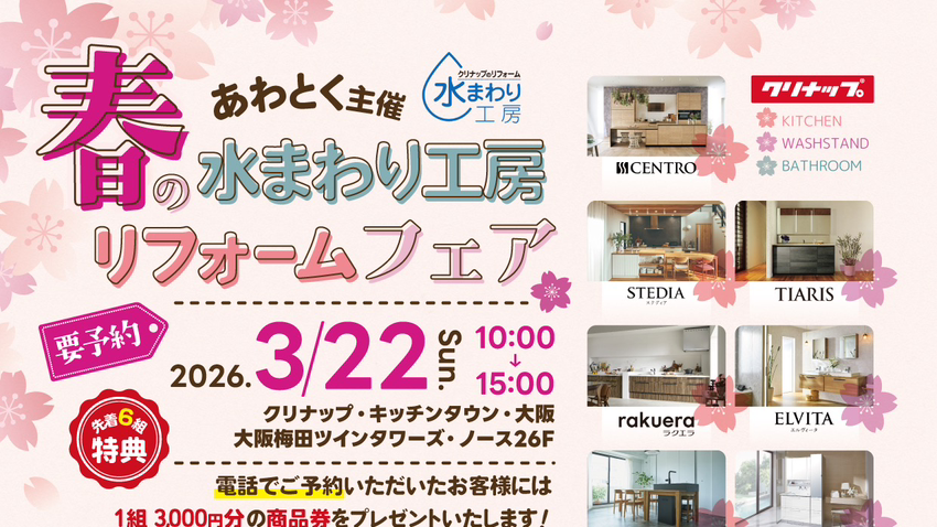 あわとく主催「春の水まわり工房リフォームフェア」を開催いたします。