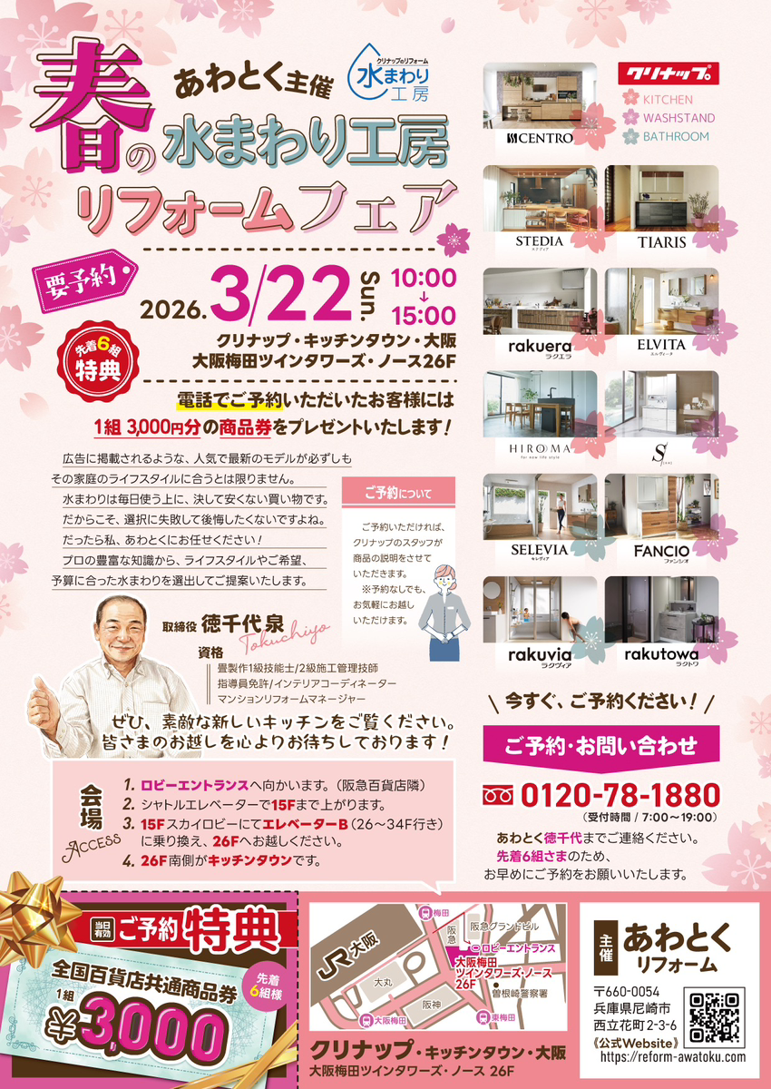 あわとく主催「春の水まわり工房リフォームフェア」を開催いたします。