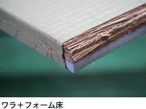 「ワラサンド床」はワラとポリスチレンフォームを組み合わせた畳床で、ワラ床と建材床のそれぞれのメリットを引き継ぎます。