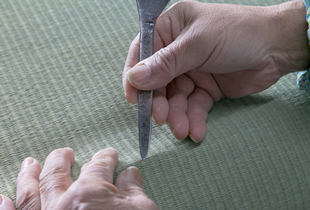 この作業によって畳表の見栄えが決まる大切な作業なので、微妙なさじ加減が重要です。